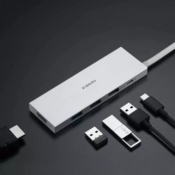 Три порта USB 3.0 Type-A (скорость передачи данных 450 Мбит/с), один USB Type-C (поддержка технологии быстрой зарядки Power Delivery) и HDMI с функцией трансляции видео в формате 4K. Подключение к ноутбуку осуществляется при помощи встроенного кабеля с коннектором USB Type-C.