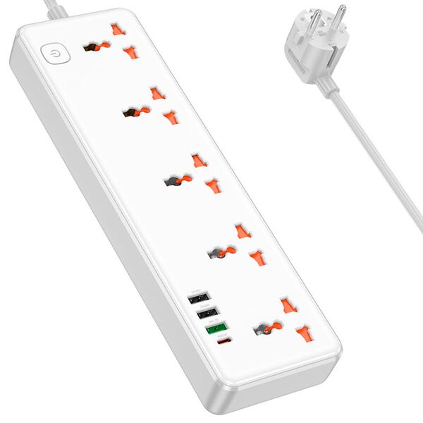 Подходит для EU, US, UK, AU, JP, KR, CN и других типов розеток. Type-C 1 + USB-A 1 + USB-A 2 + USB-A 3 = 5V / 3A – 15W max. Поддержка протоколов быстрой зарядки: для PD30W/PPS/QC3.0 и др.