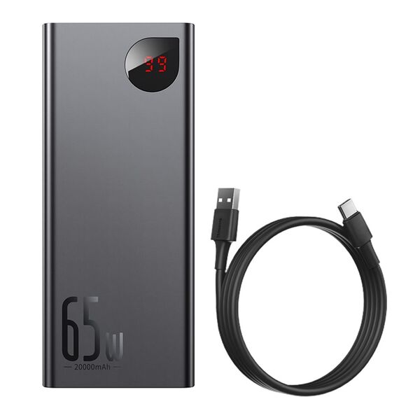 Поддержка быстрой зарядки 65W. LED дислпей, отображающий уровень заряда.