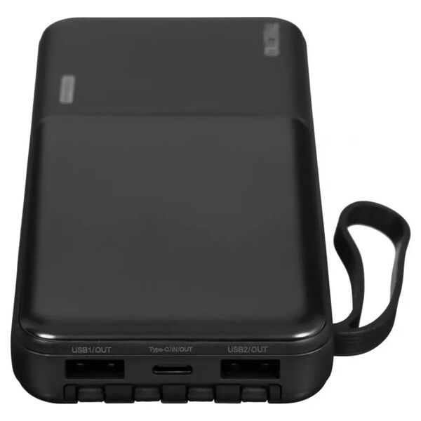 Защита от короткого замыкания, от перегрузки, LED‑индикатор заряда, силиконовый ремешок, выдвижная подставка для смартфона.
