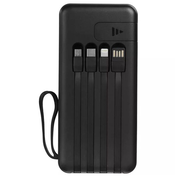 Защита от короткого замыкания, от перегрузки, LED‑индикатор заряда, силиконовый ремешок, выдвижная подставка для смартфона.