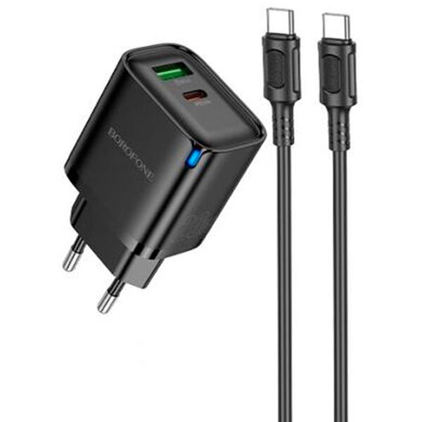 Совместная работа USB-C + USB-A: 5V/3A (15W). Тип вилки: европейский стандарт (EU). Материал корпуса: прочный ABS-пластик.