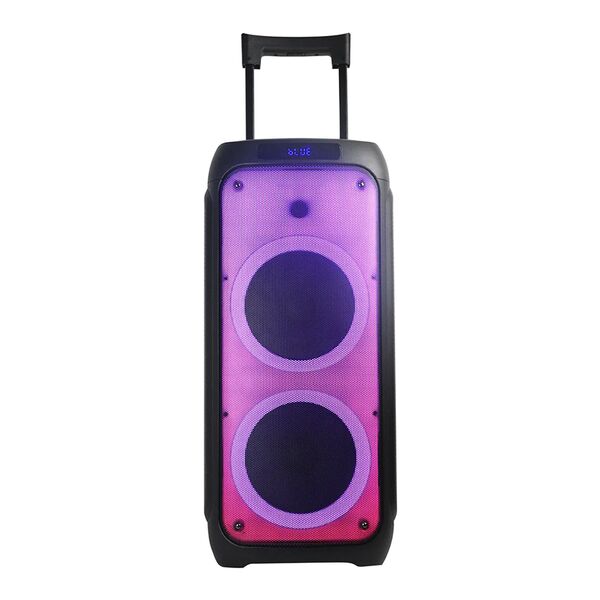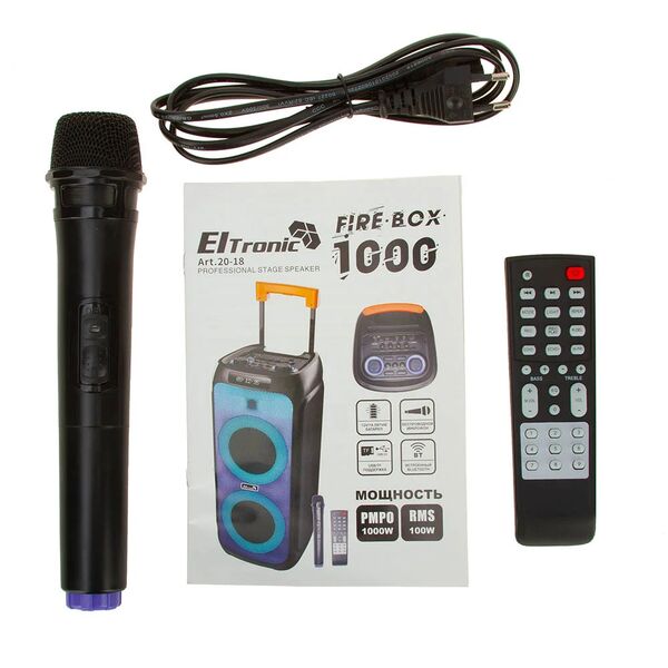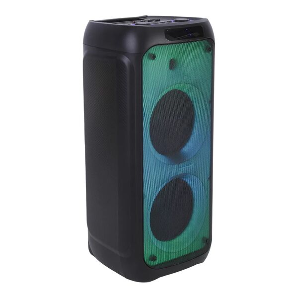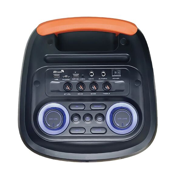 TWS функция соединения двух колонок в акустическую систему. Регулировка звучания микрофонов. LED посветка динамика (активная). Эквалайзер. Возможность записи звука. Мощность:1200 Ватт PMPO, 120 Ватт RMS. В комплекте микрофон.