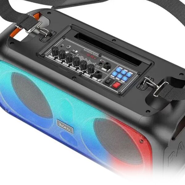 Откройте для себя невероятные возможности развлечения с портативной беспроводной колонкой HOCO BS54, которая идеально подойдет для любителей музыки и домашних караоке-вечеринок. Благодаря компактному и стильному дизайну, этот музыкальный центр станет незаменимым аксессуаром для любых мероприятий. Встроенный Bluetooth модуль позволяет легко подключать колонку к вашему смартфону или другому устройству, предлагая вам наслаждаться любимыми треками без лишних проводов. Помимо Bluetooth, колонка оснащена FM-радио, USB и AUX входами, что делает её невероятно многофункциональной и удобной в использовании.