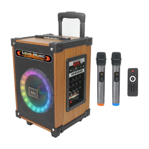 Активная RGB подсветка с несколькими режимами. Динамик: 8 дюймов. Номинальная мощность: 40W полнодиапазонный динамик + 5W высокочастотный динамик. В комплекте 2 микрофона.