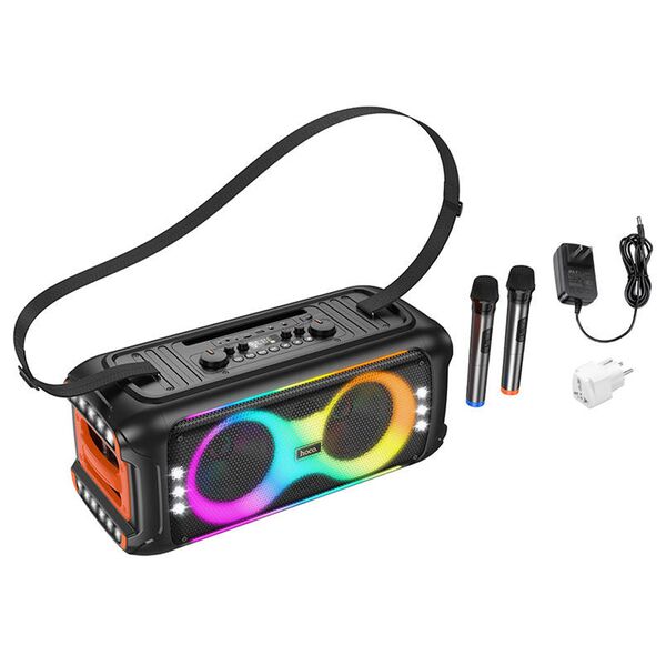 RGB подсветка. Динамик 6.5-дюймовый полнодиапазонный, 4 Ом, 20 Вт х 2 + 1,3-дюймовый твиттер, 8 Ом, 5 Вт. Мощность 40 Вт номинальная, 60 Вт пиковая. 2 микрофона и зарядное устройство в комплекте.