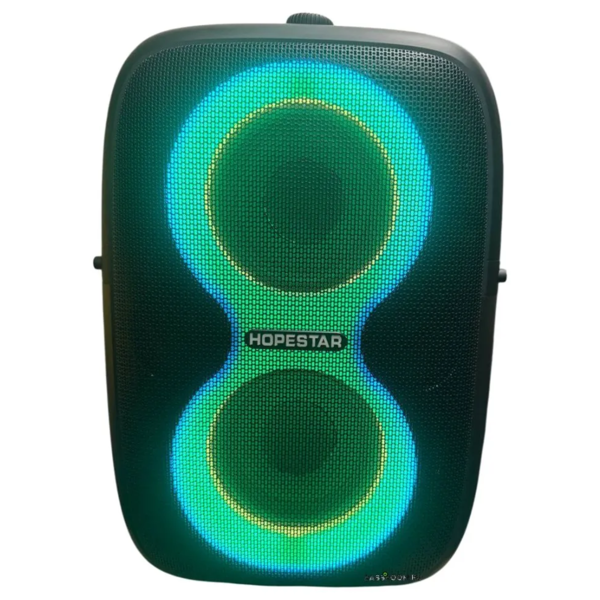 2 × беспроводных микрофона (UHF). 3D RGB-подсветка и влагозащита IPX6. Караоке с AI Vocal Removal.