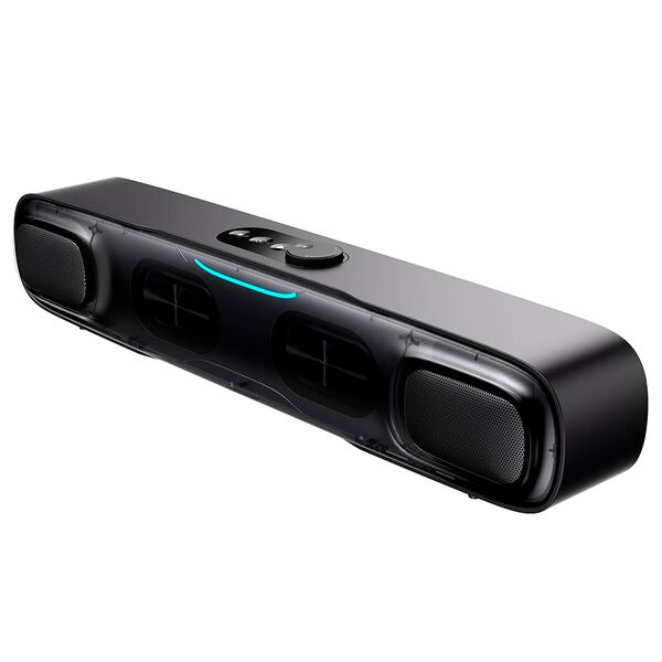 Двухполосная акустическая структура с кроссовером для объёмного звука в 3D. 7-цветная RGB-подсветка, синхронизирующаяся с музыкой или атмосферой. Встроенный микрофон с верхним креплением для приёма звонков по громкой связи. С регулятором громкости и сенсорными кнопками.