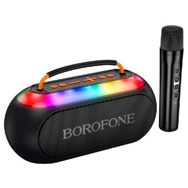 Динамики 66 мм 8 Вт x2, соотношение сигнал шум 90дБ, час, частота передачи 2402-2480 МГц, ёмкость аккумулятора микрофона 500 мАч, напряжение зарядки: DC 5V Время работы микрофона около 25 часов, вес микрофона 86 г, цветная подсветка, управление через кнопки.