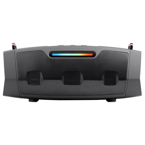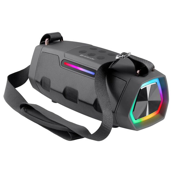 Встроенное FM-радио, TWS (объединение двух колонок), светодиодная подсветка, функция Hands-free (микрофон), ремень для переноски в комплекте.