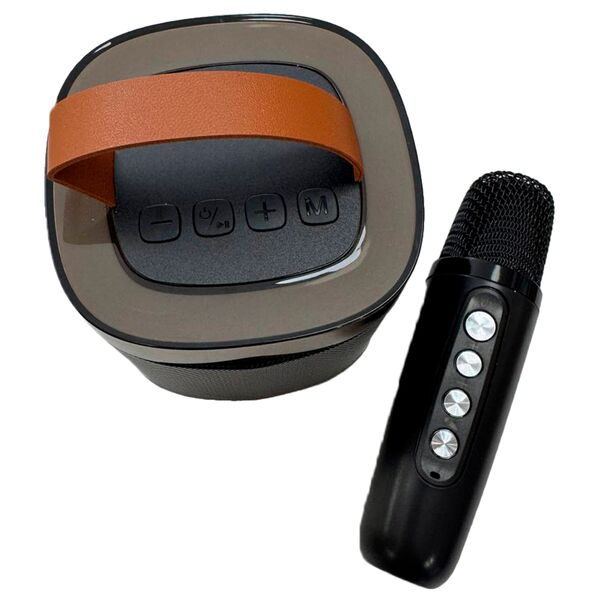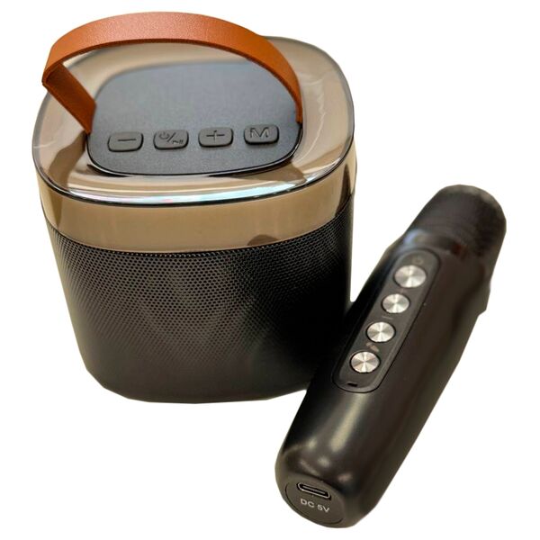 Диапазон связи 10 метров, клавиши управления, ручка для переноски, двойной динамик + басс, 5 различных стилей подсветки, формат файла MP3/WMA/WAV, выходная мощность 2"5 Вт, отношение сигнал/шум >90 дБ, микрофон в комплекте.