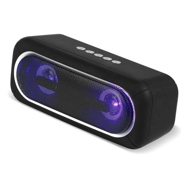 Портативная беспроводная колонка с полным набором функций: MP3-плеер (MicroSD, USB), FM-радио, bluetooth. Система оснащена двумя 52 мм широкополосными динамиками с LED-подсветкой и обладает выходной мощностью 10 Вт.