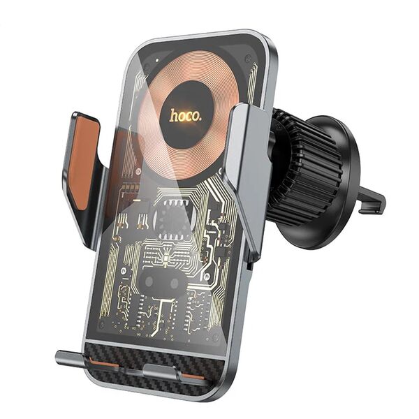 Беспроводная зарядка 15 Вт и автоматическая система фиксации телефона.