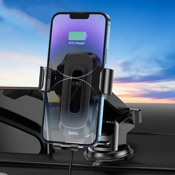 Беспроводная зарядка 15 Вт и автоматическая система фиксации телефона. Раздвижная телескопическая штанга. Поворотный механизм на 360°.