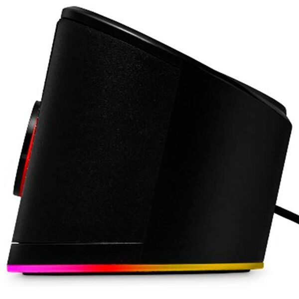 Переключатель LED подсветки касанием на верхней крышке, объемный звук, длина кабеля 1 м, суммарная выходная мощность (RMS) 6 Вт, Размер динамиков 2", соотношение сигнал/шум 65 дБ.