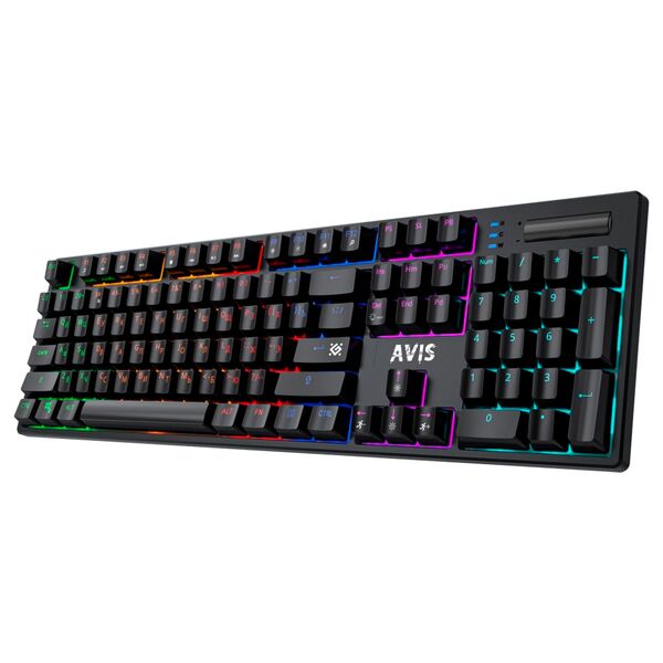 Проводная механическая клавиатура на красных линейных переключателях и регулируемой радужной подсветкой. Клавиатура имеет обширный набор функций для комфортного геймплея: блокировка клавиши WIN, обмен функциями между клавишами WASD и стрелками, все клавиши поддерживают технологию Anti-ghost.