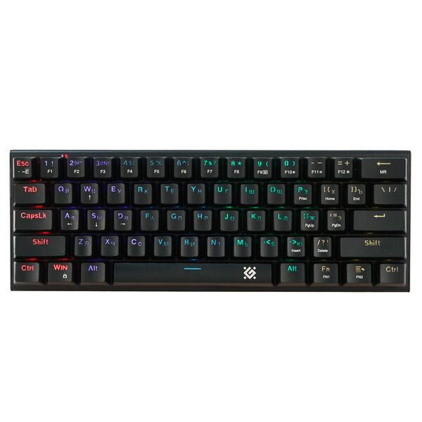 Ультракомпактная механическая клавиатура Defender Cairon GK-081 основана на линейных красных свитчах. Клавиатура имеет влагоустойчивую конструкцию, регулируемую радужную подсветку.