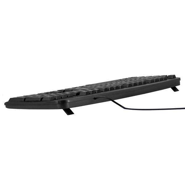 Классическая клавиатура идеально подойдет для офиса благодаря полноразмерной раскладке клавиш. Усиленная конструкция способствует устойчивости и продлевает срок службы. Для удобства работы можно откорректировать угол наклона с помощью ножек. Не требует установки драйверов для работы.