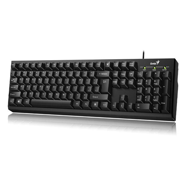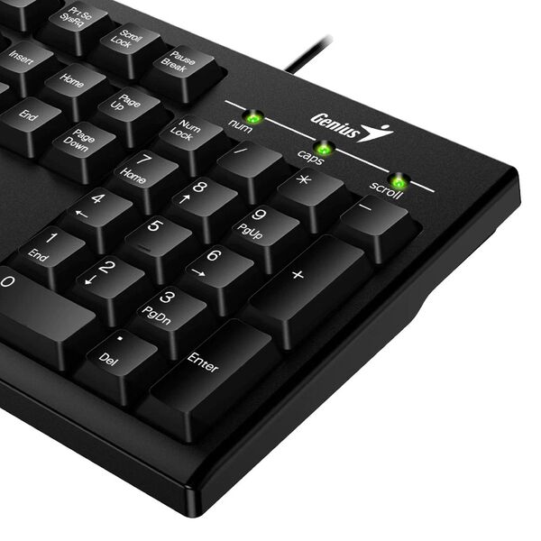 Проводная клавиатура Genius Smart KB-100 позволяет назначать различные команды для функциональных кнопок F1-F12. С их помощью можно запускать приложения, добавлять смайлики-эмодзи в онлайн-переписку, получать доступ к инструментам для редактирования текста и графики, а также переключать треки и регулировать громкость.