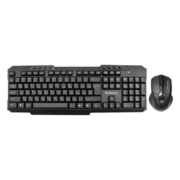 Комплект мышь и клавиатура Defender, состоящий из полноразмерной беспроводной клавиатуры и мыши. Классическая раскладка клавиатуры с полноразмерной клавишей Enter. Горячие клавиши для быстрого доступа к офисным, мультимедийным и интернет приложениям. Удобное расположение мультимедийных клавиш.