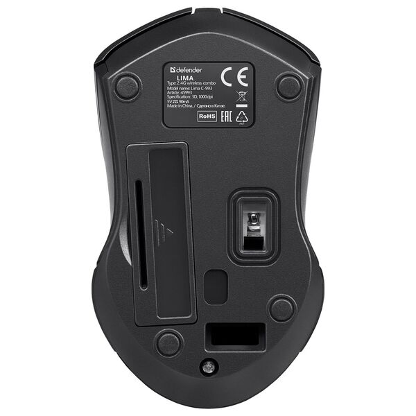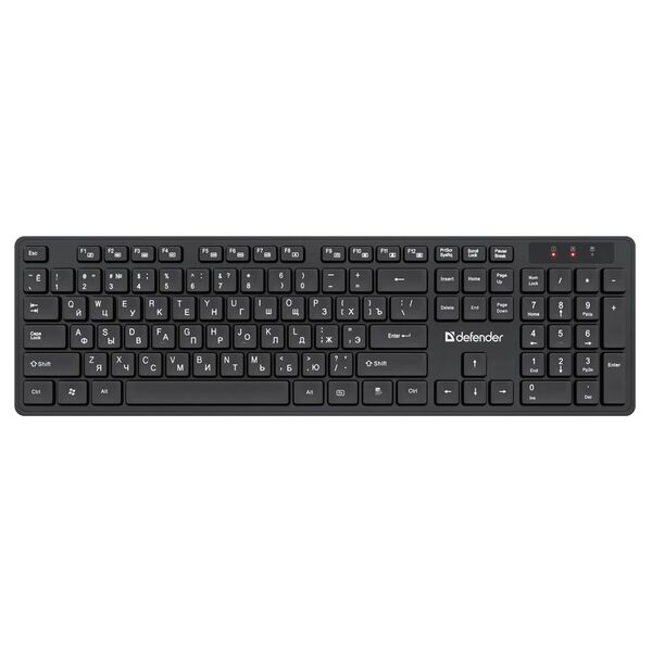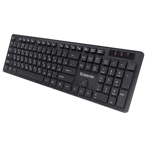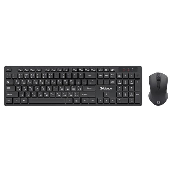 Комплект из клавиатуры и мыши Defender Lima - стильный беспроводной офисный набор. В него входит полноразмерная клавиатура с плоскими кнопками и мышь с симметричной формой, удобной для работы любой рукой.¶Комплект работает от одного приемника.