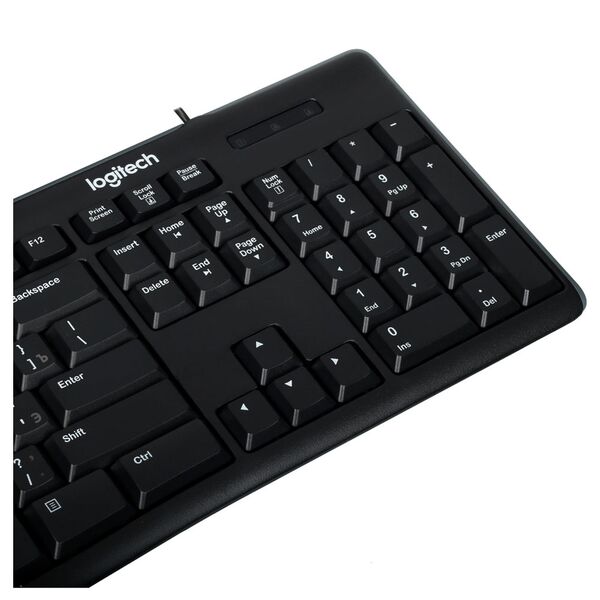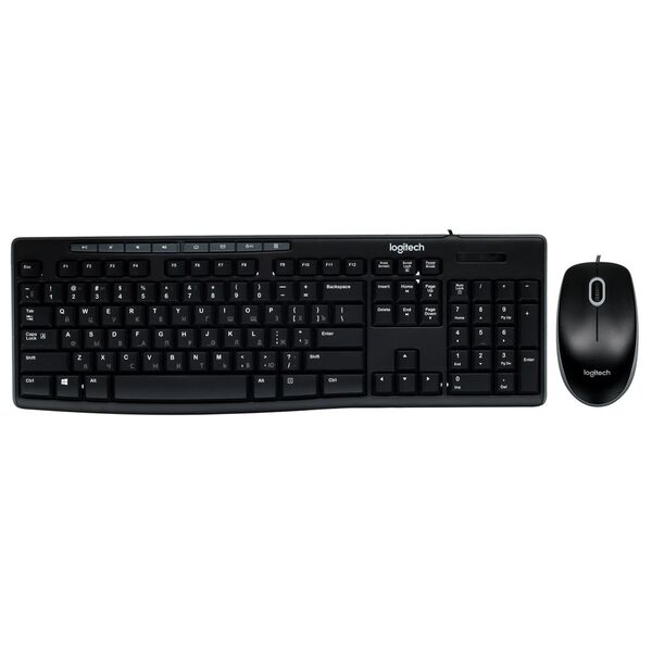 Клавиатура+мышь проводная Logitech MK200 – комплект устройств для удобного и точного управления в различных программах. Они выполнены в пластиковых корпусах с практичным покрытием и оформлением в классическом черном цвете. Влагозащищенная клавиатура обладает полноразмерной раскладкой с цифровым блоком и мультимедийными клавишами.