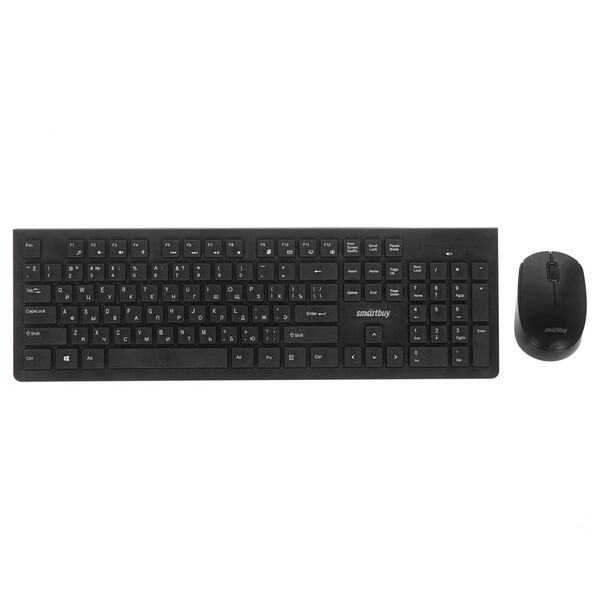 Клавиатура+мышь Smartbuy SBC-206368AG-K черного цвета представляют собой довольно функциональные устройства, которые можно подключать беспроводным способом через USB-разъемы. Для этого они укомплектованы USB-ресиверами, которые улавливают сигнал в радиусе 10 м. У клавиатуры и мыши довольно лаконичный дизайн, подходящий для рабочего кабинета. На корпусе мыши расположены 3 основные кнопки (вместе с колесом прокрутки). Ее светодиодный оптический сенсор может работать в нескольких режимах разрешения датчика (от 800 до 1600 dpi).