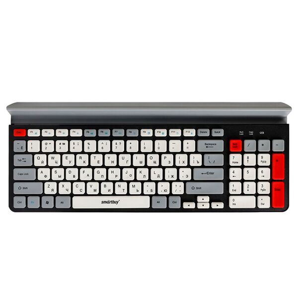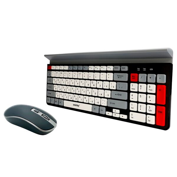 Беспроводные устройства работают на расстоянии до 10 м от ПК. Клавиатура состоит из 96 кнопок, включая дополнительные и мультимедийные, а также цифрового блока. Это удобное устройство ввода обладает мембранным механизмом нажатия низкопрофильных клавиш.
