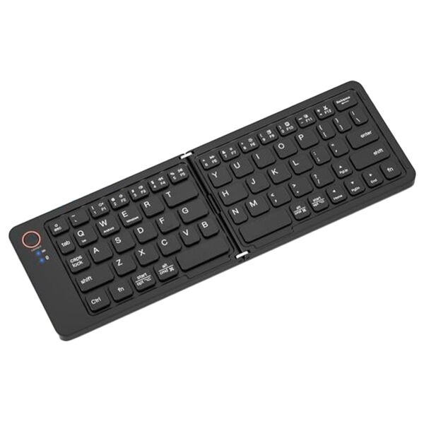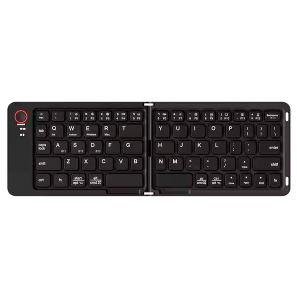 В сложенном состоянии держится на магнитах. Подключение к трём устройствам. Мультимедийные клавиши через Fn.
