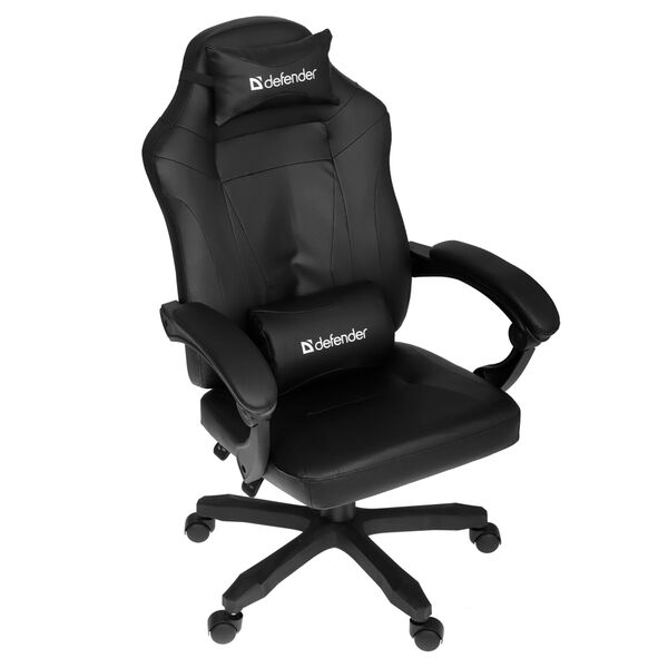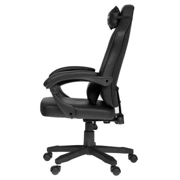 Эргономичное игровое кресло с обивкой из экокожи, механизмом качания и регулировкой наклона спинки до 135°.
