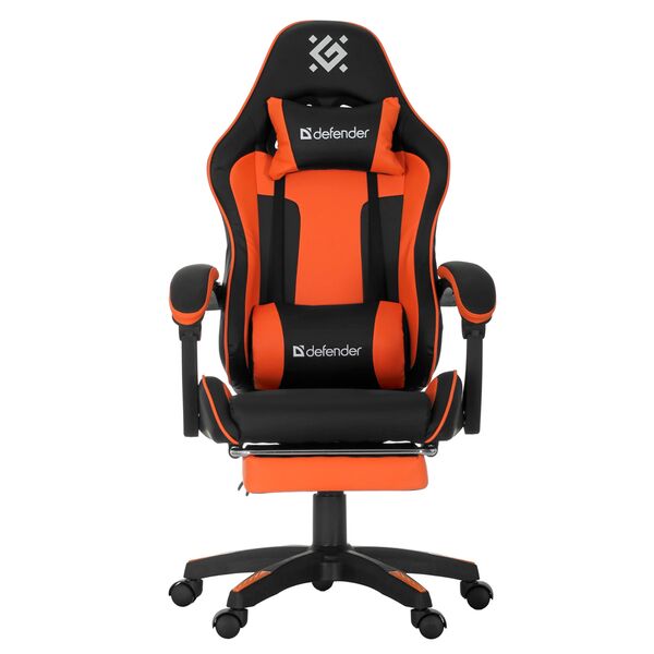 Кресло игровое Defender Sorang с дизайном в черном и оранжевом цветах оснащено подставкой для ног, подголовником и нерегулируемыми пластиковыми подлокотниками с мягкими накладками. В модели реализована функция регулировки угла наклона спинки. Изделие рассчитано на нагрузку до 160 кг.