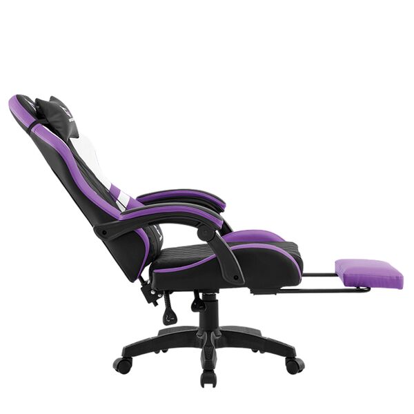 Высокоплотный пенный наполнитель. Прочная экокожа на спинке и сиденье. Выдвижная подножка для ног служит дополнительным способом расслабиться. Раскладываемая спинка для максимального комфорта. Многофункциональный механизм. Фиксированные подлокотники с отделкой из экокожи. Настраиваемая высота кресла. Газлифт 4 класса. Максимальная нагрузка – до 120 кг. Основание из прочного нейлона. Тихие и надежные 60 мм колеса из полиуретана. Эргономичные подушки под шею и поясницу. Регулировка наклона спинки от 90° до 115°. Для людей ростом 180 см.