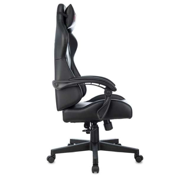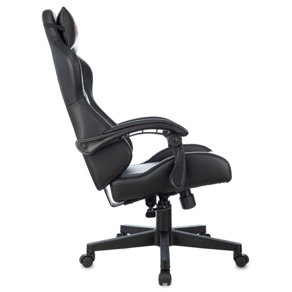 Обивка спинки и сиденья изготовлена из экокожи. Легкость перемещения изделия по полу гарантируют ролики из пластика.