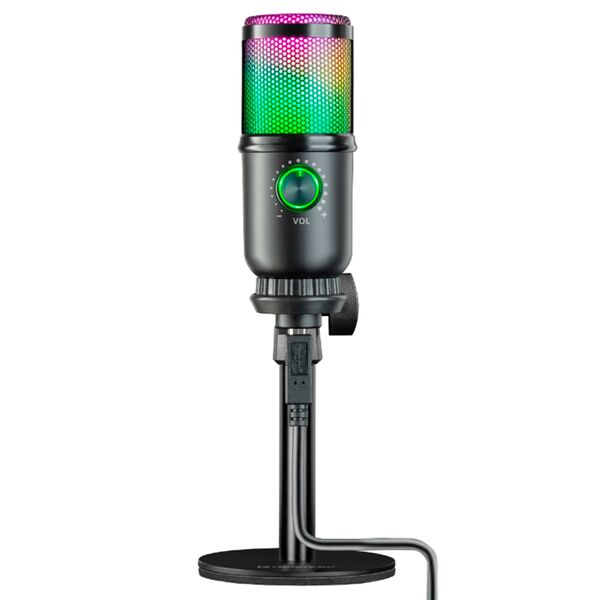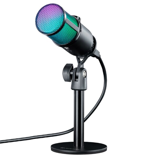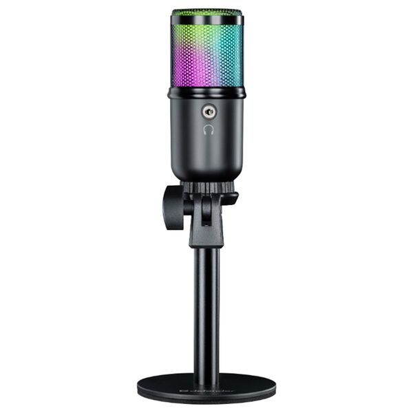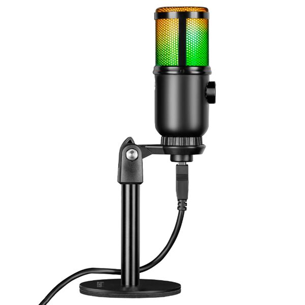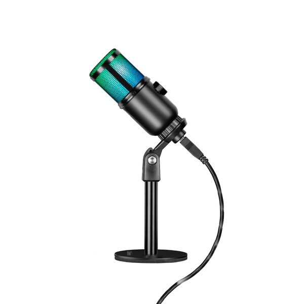 Длина кабеля 1.3 м, Чувствительность 34 дБ, импеданс 2.2 кОм, конденсаторный микрофон, RGB подсветка, разъем для наушников.