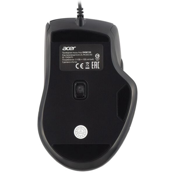 Мышь проводная Acer OMW130 [ZL.MCEEE.00J] с черным цветовым исполнением получает продуманную с точки зрения эргономики форму корпуса, удобную как для правой, так и для левой руки пользователя. Благодаря шероховатому покрытию SoftTouch на корпусе достигается комфортный и плотный хват во время работы или игры.