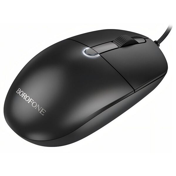 Borofone BG17 — проводная мышь для компьютера с кабелем длиной 1,4 м. Имеет симметричную форму, подходит для левой и правой руки.