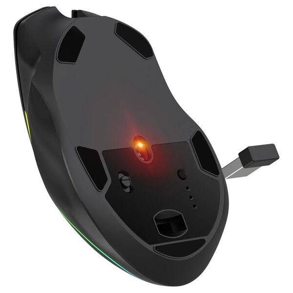 Эргономичная игровая мышь с изменяемой RGB подсветкой и кнопкой Fire для шутеров. В модели Immortal GM-421 предусмотрены 3 режима подключения: проводное, беспроводное по радиоканалу 2.4 Ггц, беспроводное подключение по Bluetooth. Также мышь имеет две боковые кнопки, тефлоновые ножки, а частота опроса в данной модели регулируется с помощью ПО.