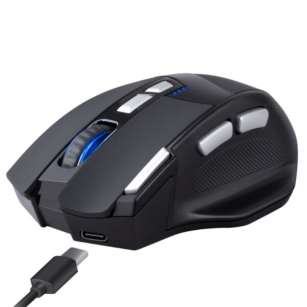 Беспроводная игровая мышь является прекрасным выбором для геймеров, любящих шутеры, ведь главная особенность этой модели - наличие кнопки "FIRE". Также мышь имеет 2 боковые кнопки и тефлоновые ножки для более быстрого скольжения.