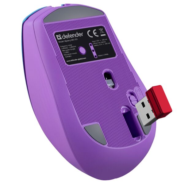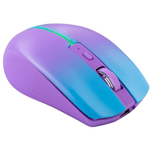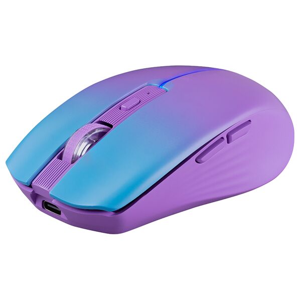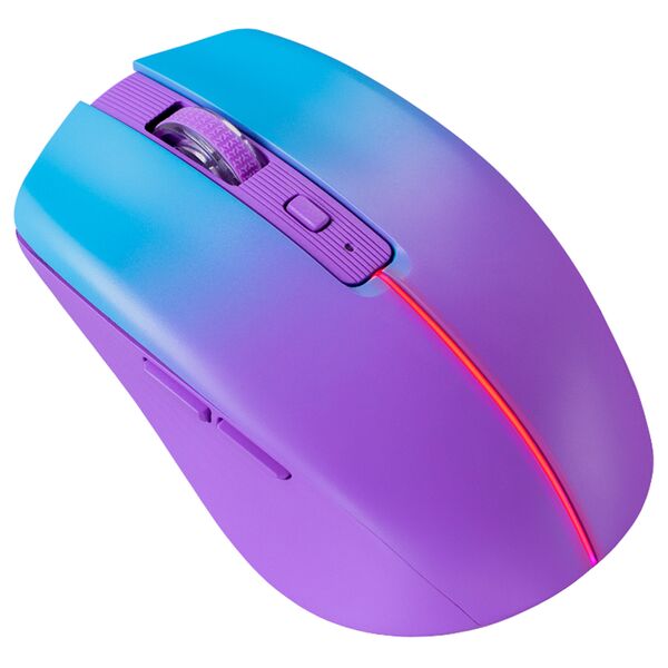 Возможность выбора интерфейса подключения радиоканал 2,4 ГГц - через USB-приемник (в комплекте)/Bluetooth, постоянное хранение в памяти двух устройств для подключения по Bluetooth, быстрое переключение между ними, RGB подсветка, режим разрешения мыши 800/1200/1600 dpi, бесшумное нажатие, 2 дополнительные боковые кнопки, тефлоновые ножки, отсек в корпусе мыши для хранения приемника.