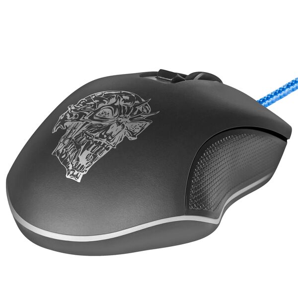 Проводная мышь с высоким разрешением станет залогом ваших достижений в видеоиграх. Для управления процессом она получила сразу 6 кнопок, включая программируемые. Представленная модель облачена в черный корпус, украшенный стильным рисунком и многоцветной подсветкой. Выполнен из резины и матового пластика. Форма предназначена для правой руки. Поставляется вместе с черным ковриком. Присоединяется к компьютеру за счет 1.5 метрового кабеля в тканевой оплетке.