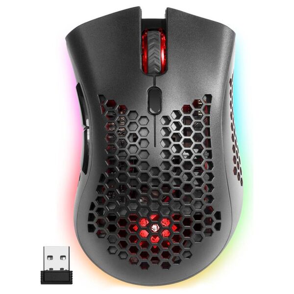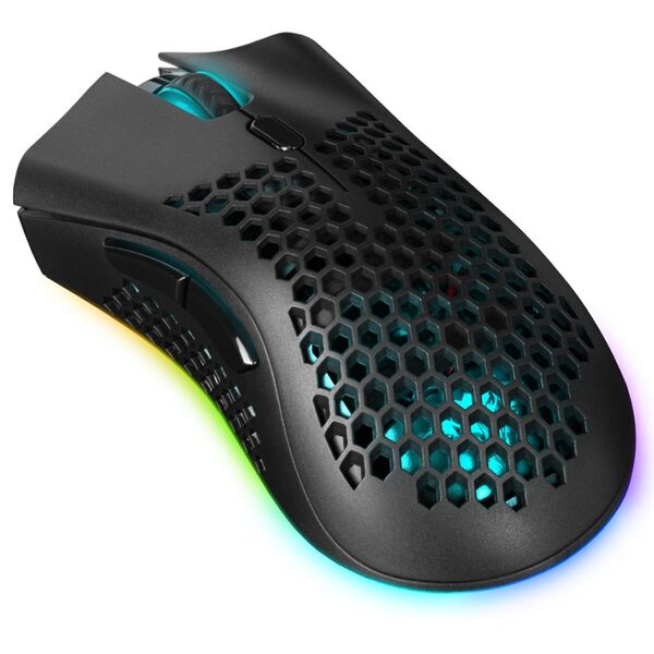 Беспроводная игровая мышь, легкий корпус удобной формы, RGB подсветка.