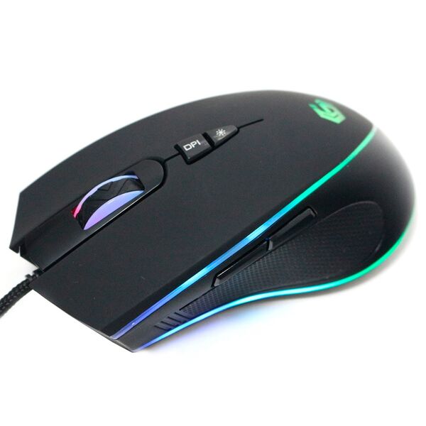 Регулируемая RGB-подсветка, длина кабеля 1.8 м, разрешение: 800/1600/2400/3200 DPI, кабель в оплётке.