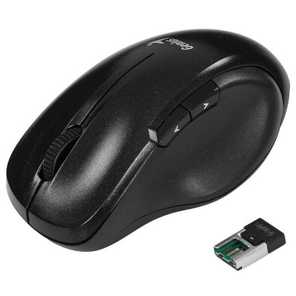 Мышь беспроводная Genius Ergo 8200S в черном глянцевом корпусе предназначена для комфортной работы с офисными программами и других действий на компьютере. В ней установлен оптический датчик с технологией BlueEye, что предусматривает работу мыши практически на любых поверхностях. Благодаря разрешению сенсора в 1200 dpi при движении мыши по мрамору или обивке дивана курсор на экране перемещается плавно и точно в нужное место. USB-ресивер обеспечивает стабильное подключение мыши к ПК по радиоканалу с частотой 2.4 ГГц.
