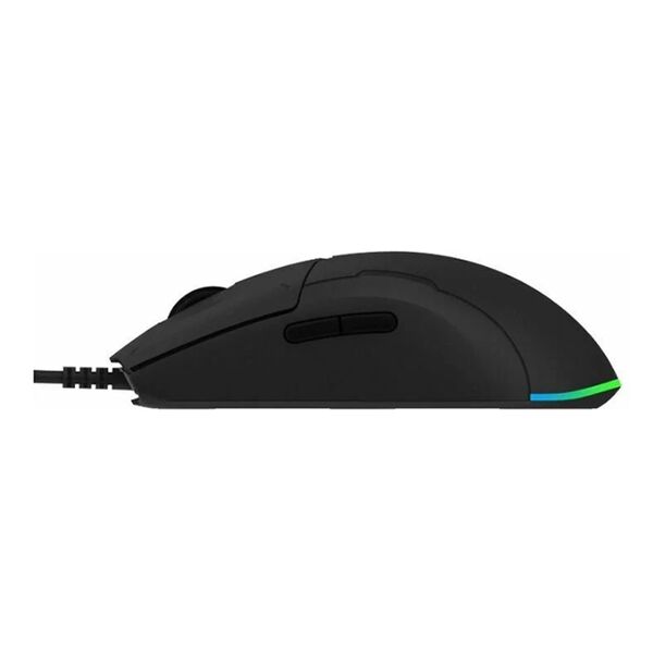 Благодаря корпусу «zero punch» вес мышки составляет всего 72 г, что не снижает её прочность и способствует маневренности в игровом процессе. Встроенная RGB подсветка, которую можно регулировать нажатием боковых клавиш, обеспечивает атмосферное времяпрепровождение за компьютерными играми. А разнообразие световых эффектов помогут подобрать подходящую подсветку. Изогнутая поверхность корпуса идеально подходит для маневренного использования. Благодаря этому рука не будет уставать при долгой эксплуатации. Колёсико мыши с 24 делениями, с чётким ощущением масштаба. Обеспечивает точное и плавное управление в напряжённых играх. Встроенный датчик PixArt позволяет разрешению достигать до 220 значения IPS (6200 точек на дюйм). 5 режимов DPI: 400, 800, 1600, 3200, 6200. Встроенный 32-разрядный микроконтроллер от ARM NXP обеспечивает быструю обработку данных частотой 1000Гц. А скорость отклика составляет всего 1 м/с. Защита от пыли и брызг IP54.