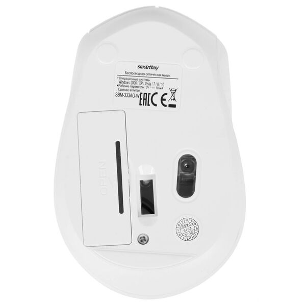 Мышь беспроводная Smartbuy SBM-333AG-W белого цвета выделяется оригинальной формой корпуса. При этом мышь достаточно удобная для повседневной работы на ПК, а за счет ее симметричности пользоваться мышью могут и правши, и левши. Выполненная из матового пластика, мышь хорошо удерживается в руке.