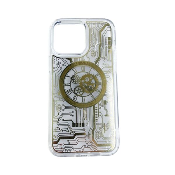 Чехол для iPhone 14 Pro Max MagSafe Clock силиконовый Золотой