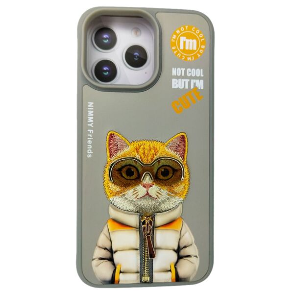 Чехол для iPhone 15 Pro Max накладка NIMMY кот в пуховике Серый