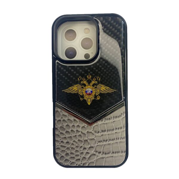 Чехол для iPhone 16 Pro Max накладка Cabbeen Герб МВД Черный/серый