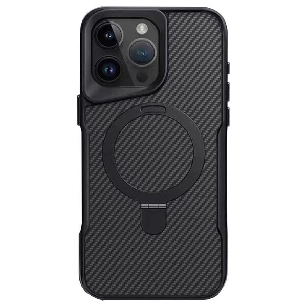 Чехол для iPhone 16 Pro Max накладка SkyArmor Carbon MagSafe кольцо-подставка Черный