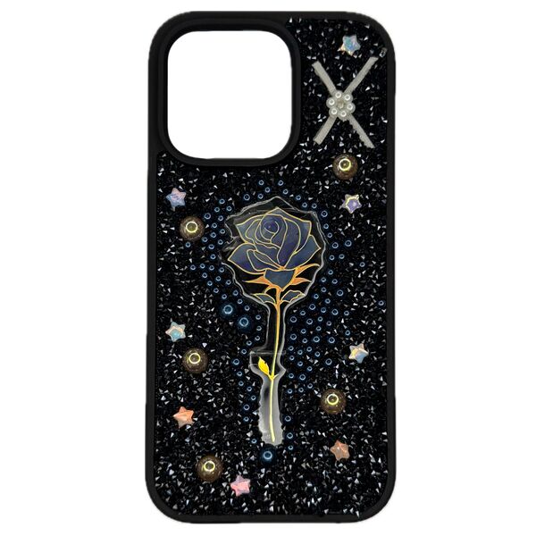 Чехол для iPhone 16 Pro накладка iPefet Стразы принт роза Черный